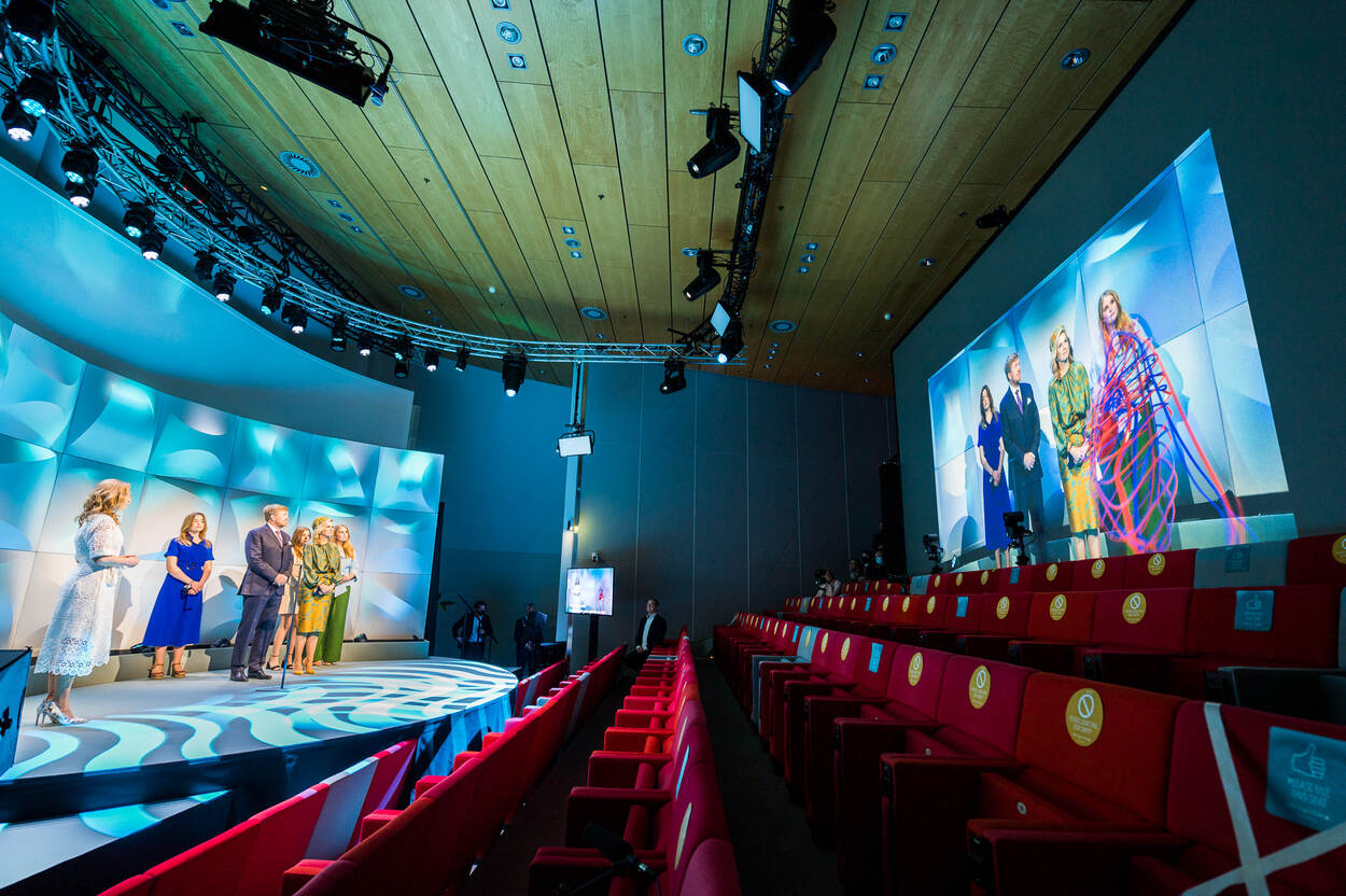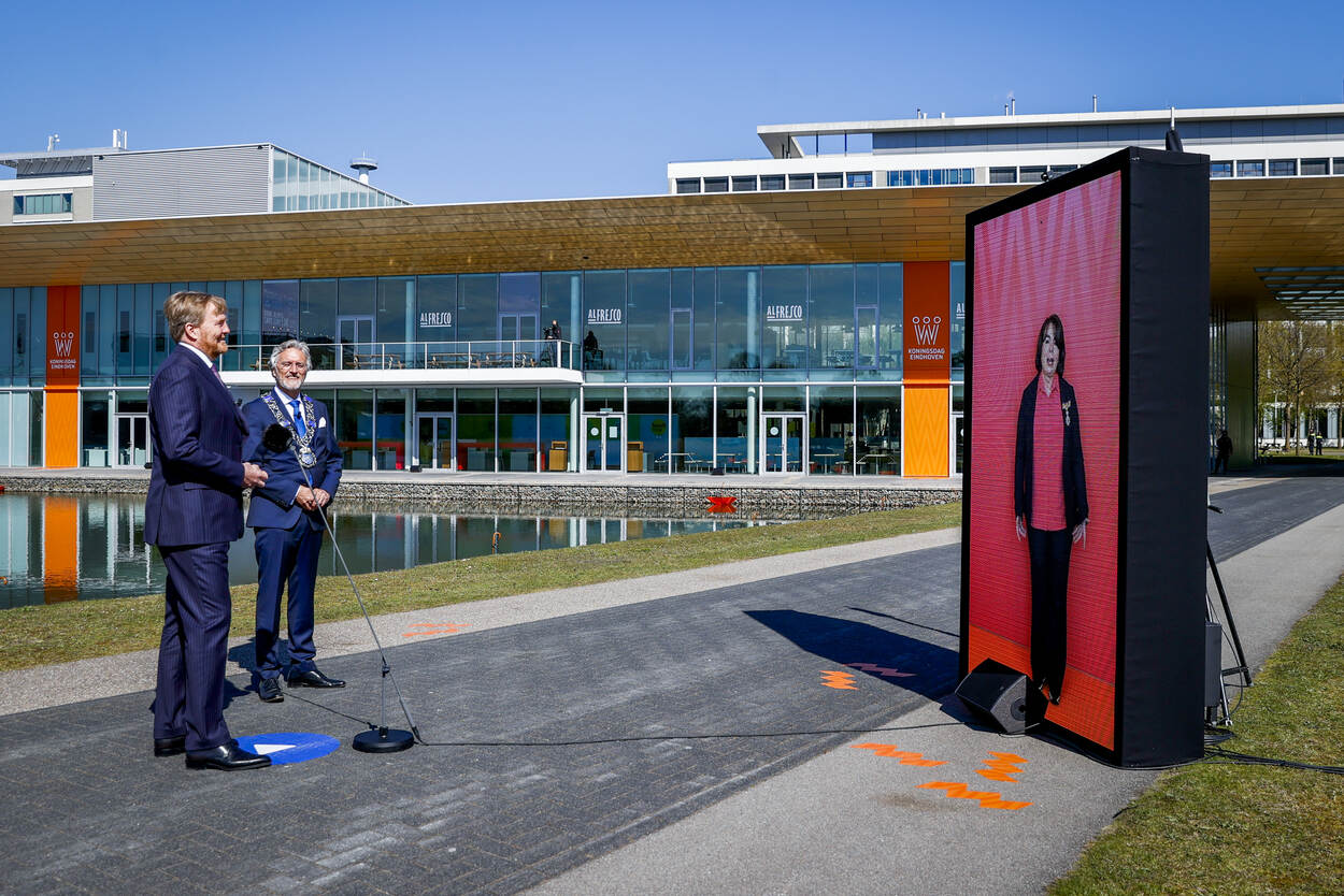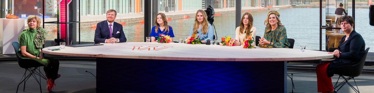 Koning Willem-Alexander, Koningin Máxima, de Prinses van Oranje, Prinses Alexia en Prinses Ariane zijn aanwezig op de High Tech Campus in Eindhoven ter gelegenheid van Koningsdag 2021. Vanuit een studio nemen zij deel aan een speciale online en tv-uitzending waarin Brainport Eindhoven zich presenteert aan de hand van het thema KennisMaken.