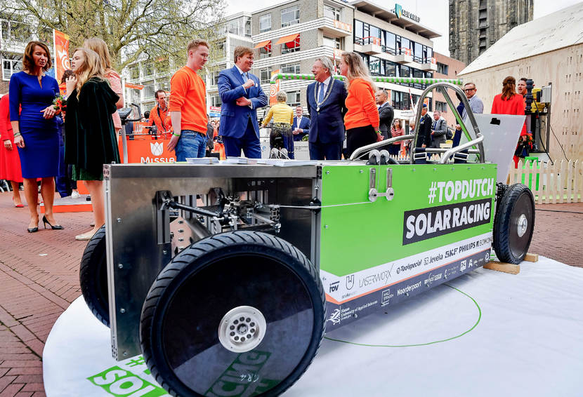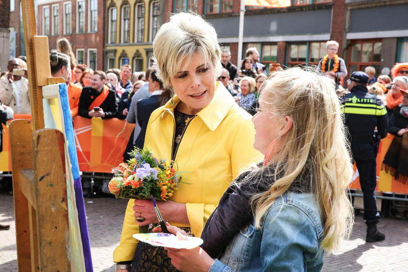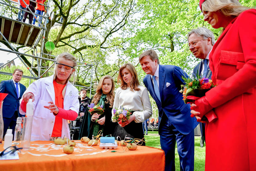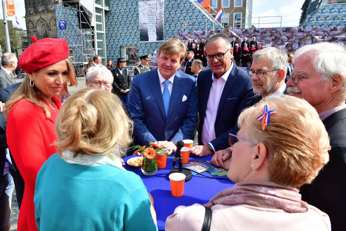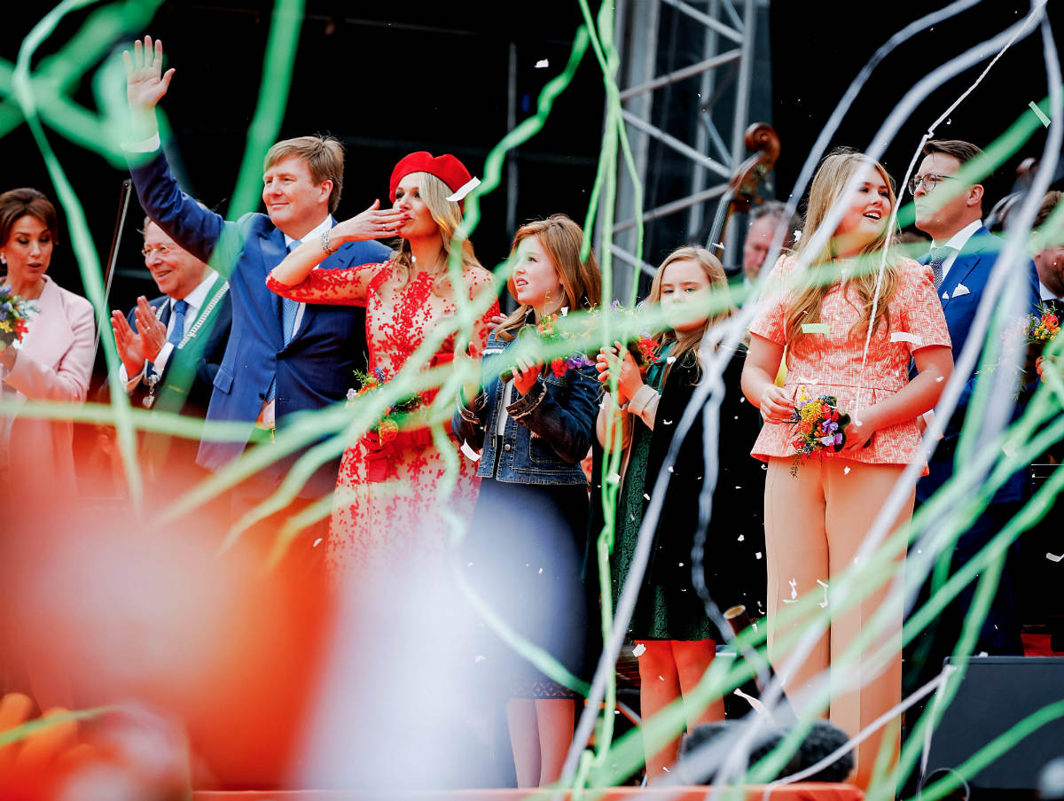 Hunne Majesteiten Koning Willem-Alexander en Koningin Máxima zijn vrijdag 27 april 2018 aanwezig bij de viering van Koningsdag in Groningen, hoofdstad van de provincie Groningen.