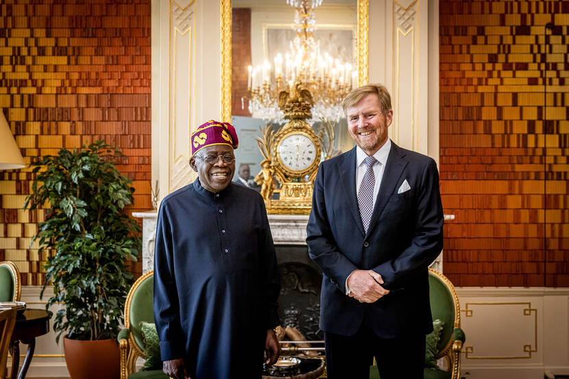 Koning Willem-Alexander ontvangt de president van Nigeria, de heer Bola Tinubu, tijdens zijn werkbezoek aan Nederland. Het bezoek staat in het teken van de goede relaties tussen Nederland en Nigeria. Aansluitend spreekt Koningin Máxima met de president over de voortgang van financiële inclusie in Nigeria. In 2017 bracht zij als speciale pleitbezorger van de secretaris-generaal van de Verenigde Naties voor inclusieve financiering voor ontwikkeling (UNSGSA) een bezoek aan het land.