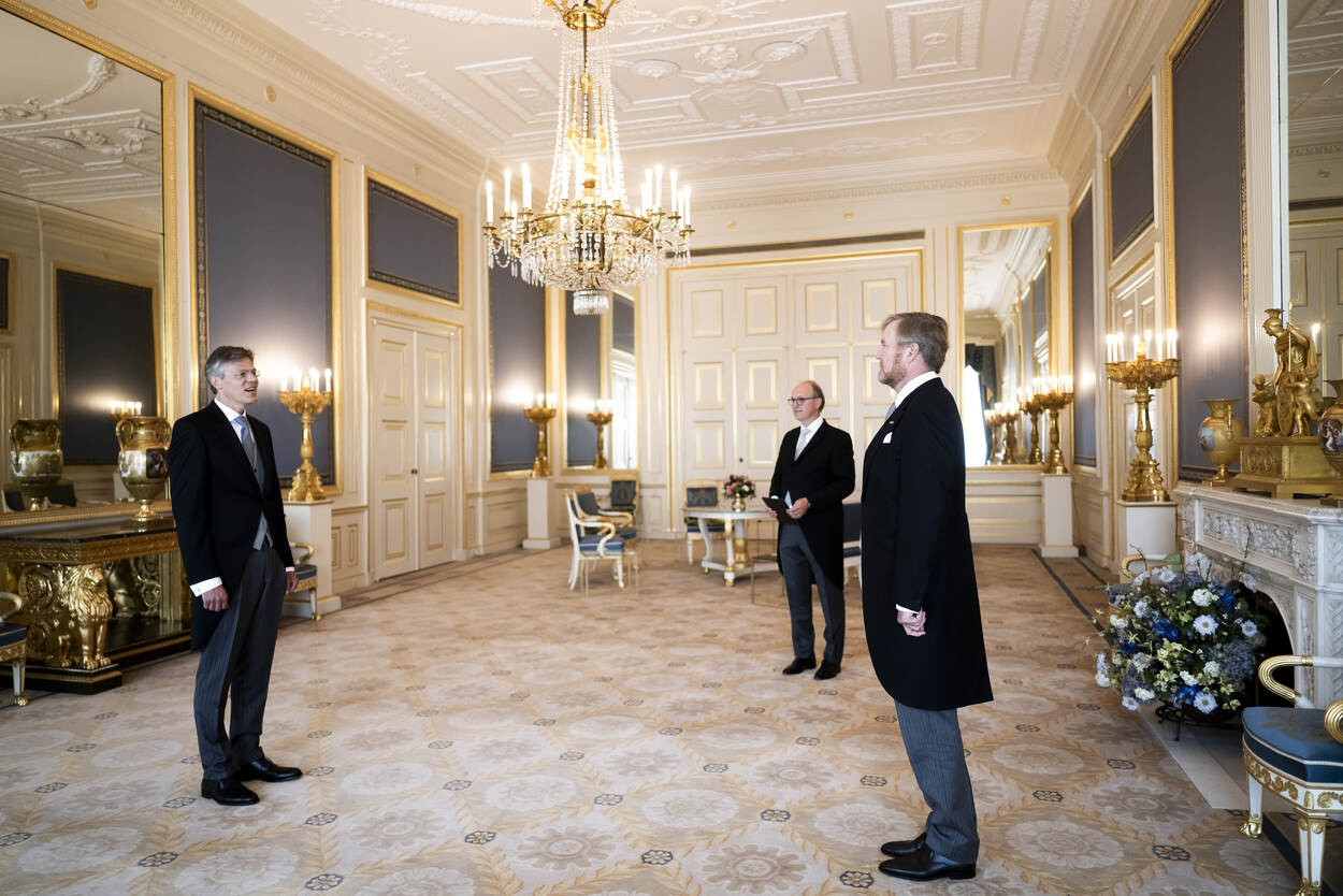 Koning Willem-Alexander ontvangt de heer mr. R. Kuiper vanwege zijn benoeming als raadsheer in de Strafkamer van de Hoge Raad der Nederlanden. Raadsheer Kuiper wordt ten overstaan van de Koning beëdigd.