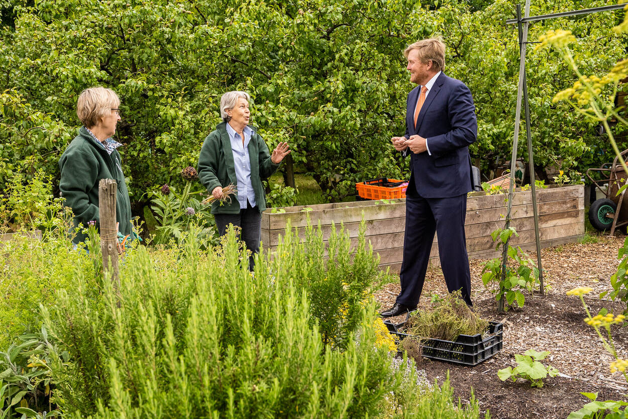 Koning Willem-Alexander spreekt met de initiatiefnemers, buurtbewoners en vrijwilligers over o.a. het belang van de tuin voor de sociale samenhang in de buurt. Tijdens een rondleiding door de tuin en de boomgaard krijgt de Koning uitleg van vrijwilligers over de wijze waarop verschillende initiatieven in de tuin zijn omgezet.