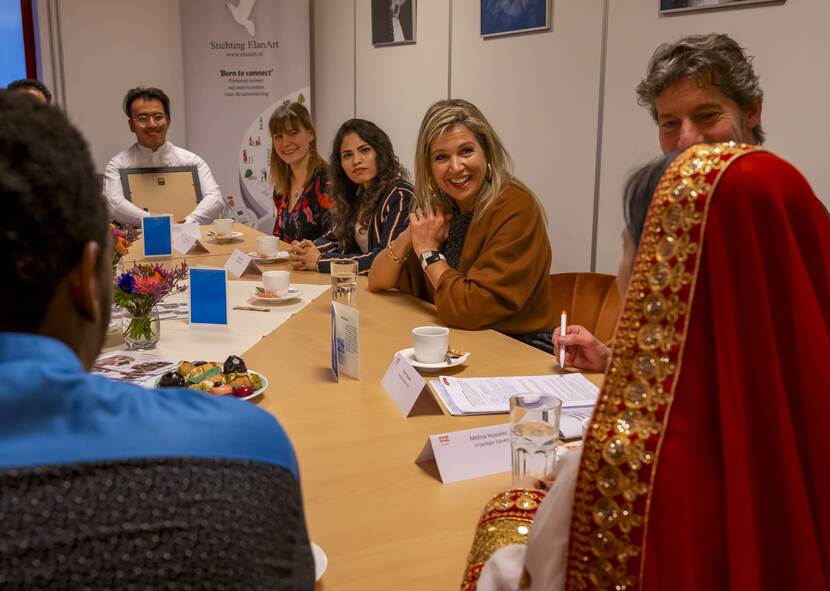 Koningin Máxima spreekt tijdens het werkbezoek met vertegenwoordigers van ElanArt over de aanpak en de ontwikkeling van de stichting en zij woont enkele presentaties bij van deelnemers aan de projecten. Tot slot gaat Koningin Máxima in gesprek met hen en enkele vrijwilligers over wat het initiatief voor hen betekent.