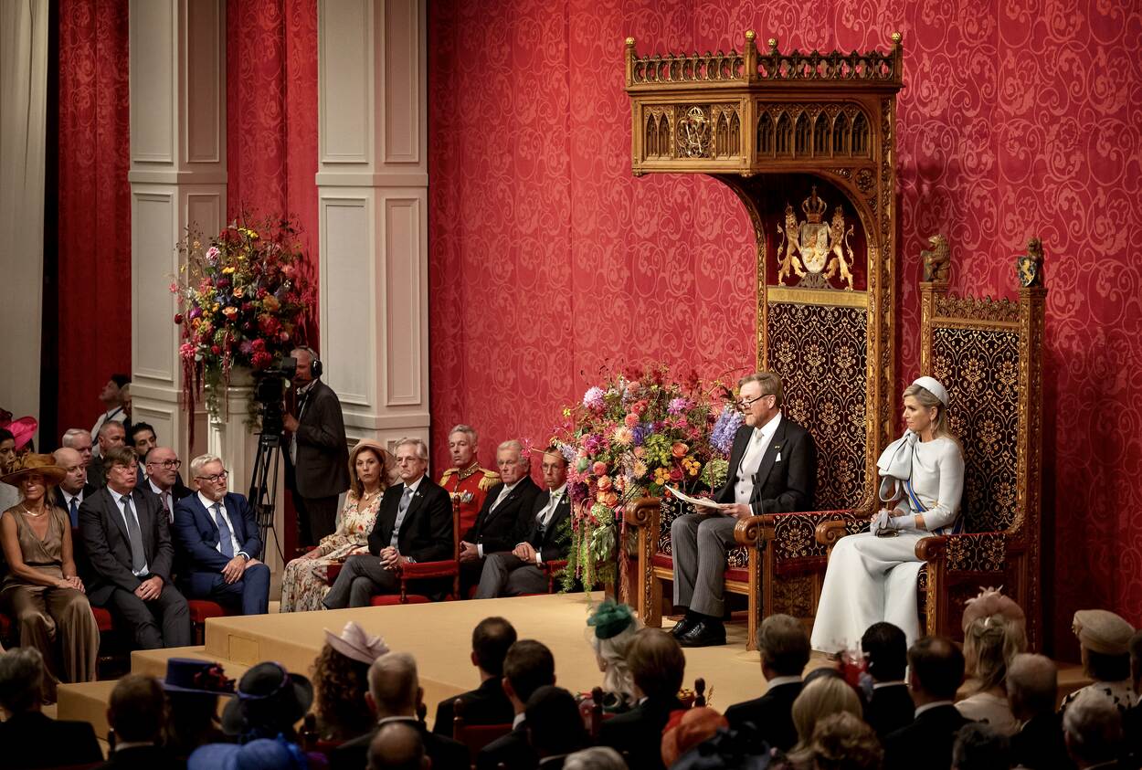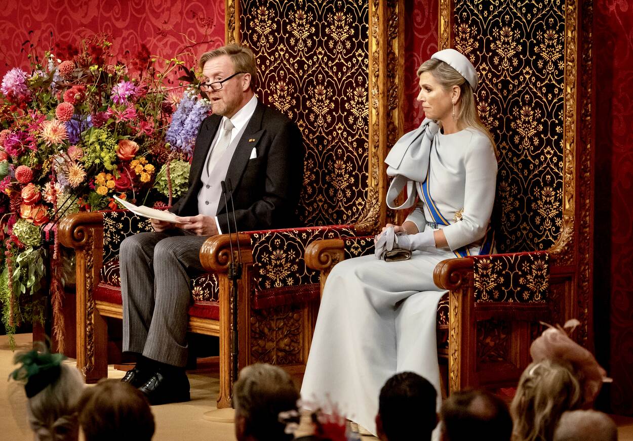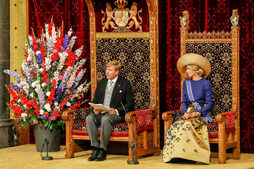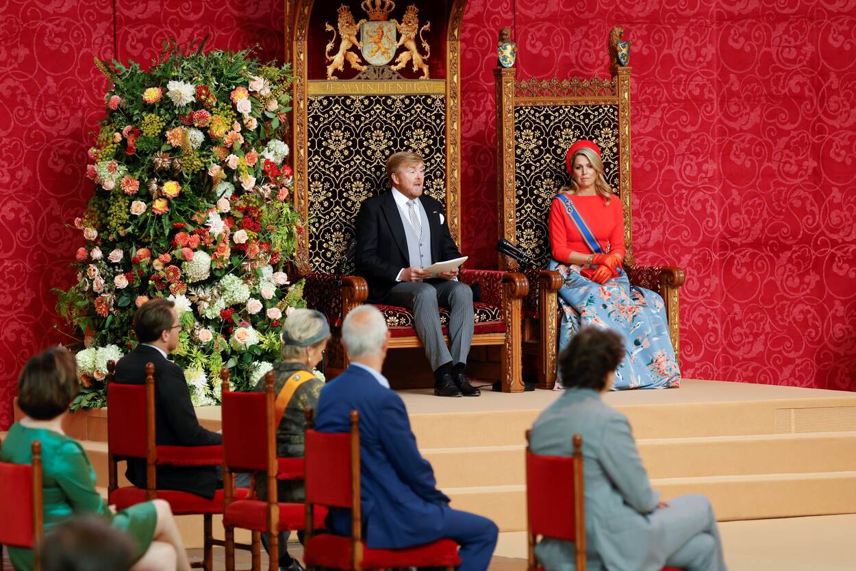 (Koning Willem-Alexander zit op de troon, gekleed in een jacquetkostuum.)