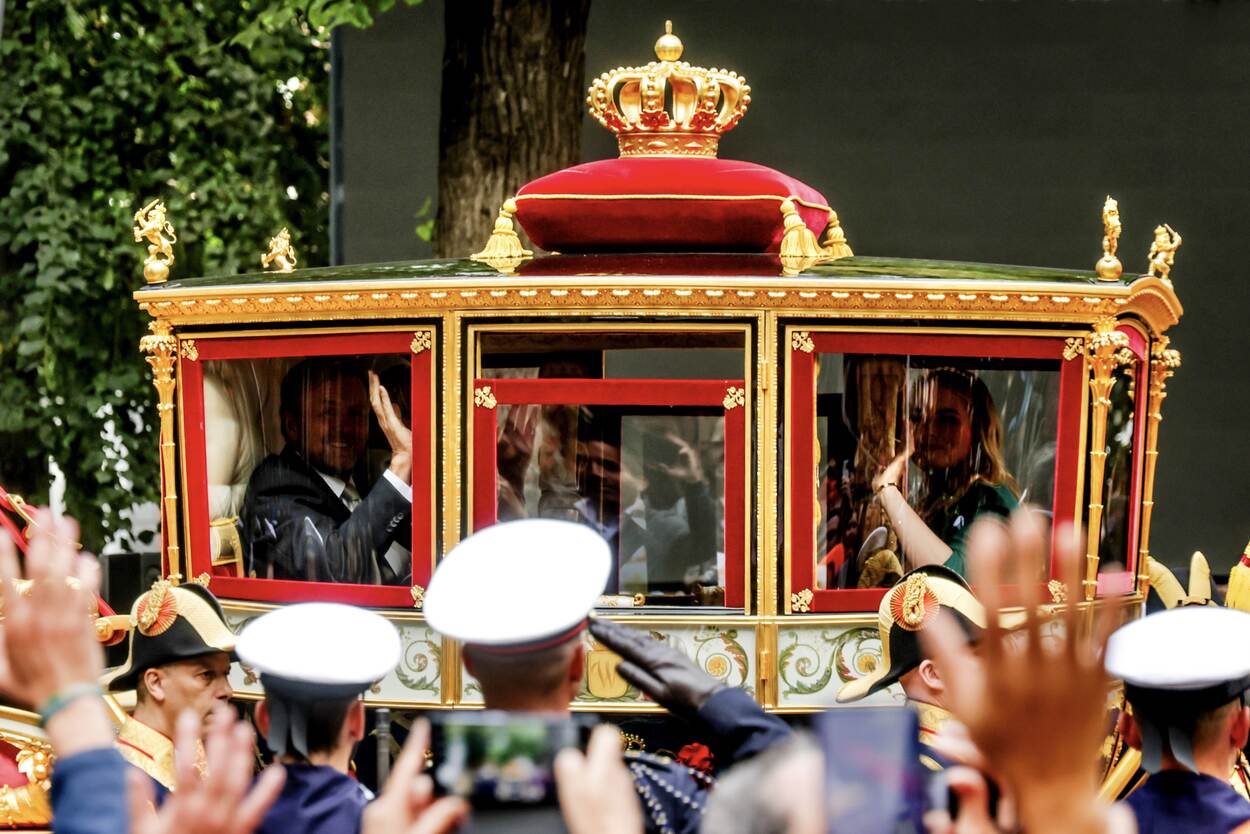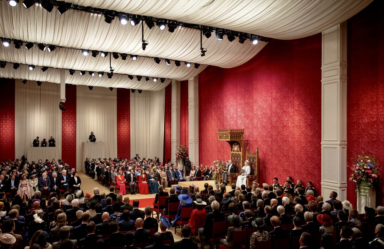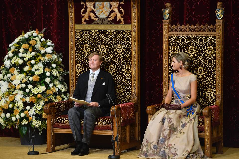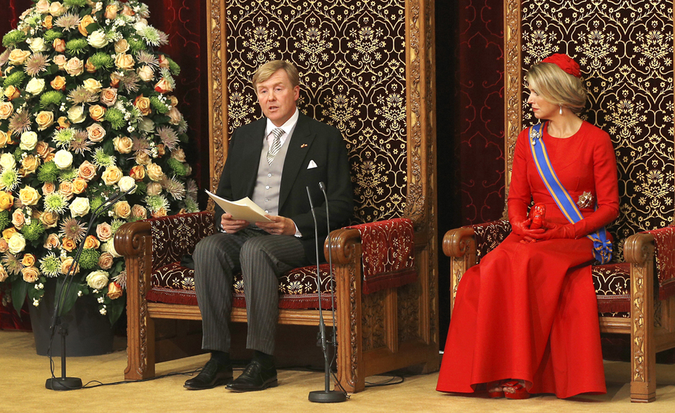 (Koning Willem-Alexander zit op de troon, gekleed in een jacquetkostuum.)