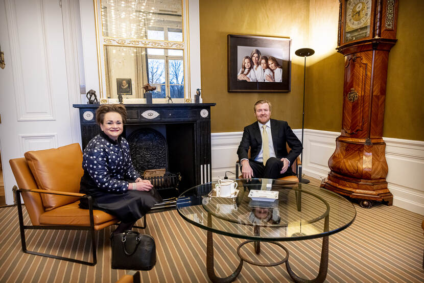 Koning Willem-Alexander ontvangt staatssecretaris Van Huffelen van Koninkrijksrelaties en Digitalisering in het kader van een reeks van kennismakingen met de ministers en staatssecretarissen van het kabinet-Rutte IV.
