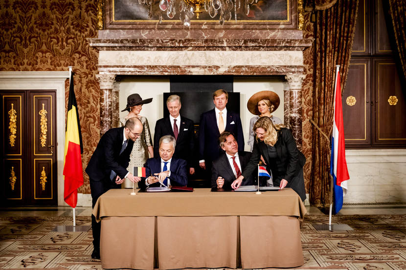 In aanwezigheid van beide Koninklijke Paren ondertekenden minister Koenders van Buitenlandse Zaken en de Belgische minister van Buitenlandse Zaken Reynders in het Koninklijk Paleis het Verdrag, voor de aanpassing van de grens tussen de Nederlandse gemeenten Eijsden-Margraten en Maastricht en de Belgische stad Wezet (Visé).