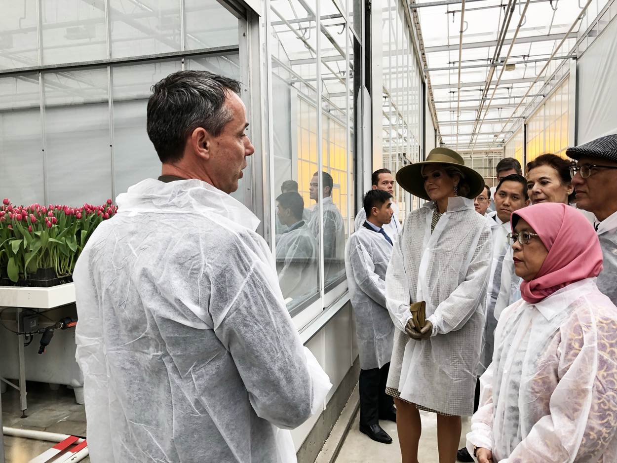 De tweede dag van het staatsbezoek begon met een bezoek van president Halimah en Koningin Máxima aan het Horticultural Centre in Bleiswijk, een demonstratie- en onderzoekscentrum van Wageningen University & Research (WUR).