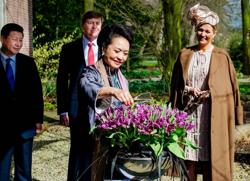 Vervolgens doopt mevrouw Peng een speciale tulp. Na een privélunch in Kasteel Keukenhof, nemen Koning Willem-Alexander en Koningin Máxima officieel afscheid van de Chinese president en zijn echtgenote.