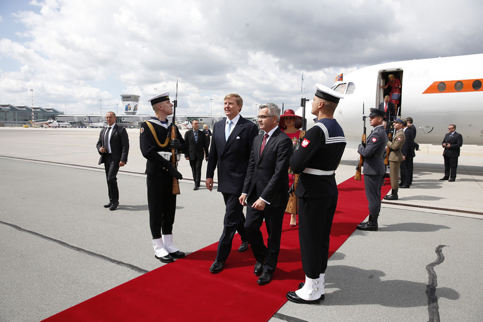 Na aankomst op dinsdagochtend 24 juni op het militair vliegveld van Warschau worden Koning Willem-Alexander en Koningin Máxima bij het presidentieel paleis officieel verwelkomd door president Komorowski en zijn echtgenote, Anna Komorowska. Na