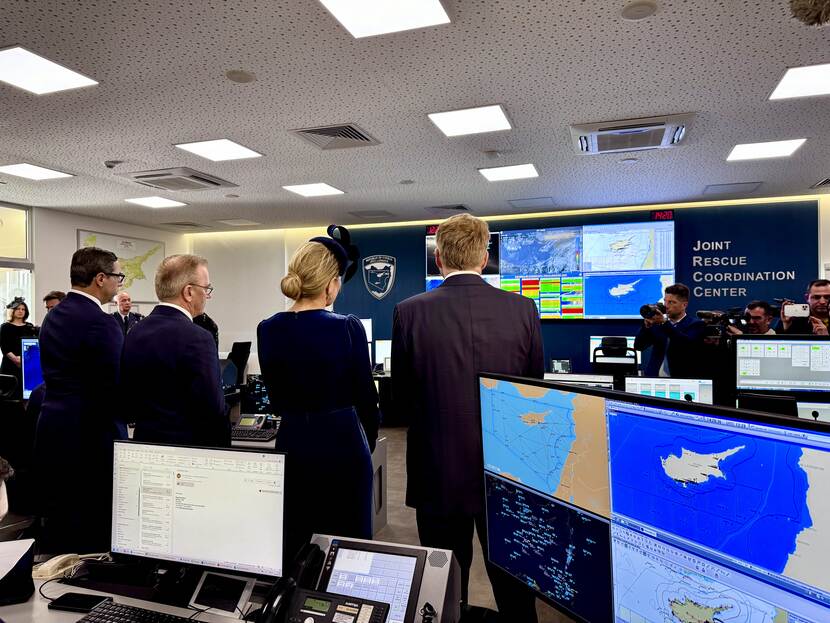 ’s Middags bezocht het Koninklijk Paar in Larnaca het Joint Rescue Coordination Center (JRCC) en het Zenon centrum. Dit is het hart van de internationale evacuatiesamenwerking op Cyprus. Door de strategische ligging is Cyprus een logische eerste uitwijklocatie om burgers op te kunnen vangen in geval van crises in de regio. Tijdens de evacuaties uit Libanon in 2006 en Soedan in 2023 is dankbaar gebruik gemaakt van de Cypriotische gastvrijheid om Nederlanders in veiligheid te brengen. In 2024 zijn enkele Nederlanders uit Libanon gerepatrieerd, via Cyprus. Om goed voorbereid te zijn op crises in de regio, organiseert Cyprus jaarlijks de oefening Argonaut, waar naast Nederland vele landen binnen en buiten de EU de civiele en militaire inzet en samenwerking tijdens een evacuatie oefenen.