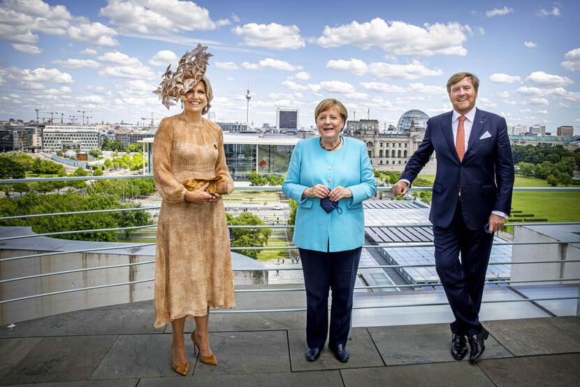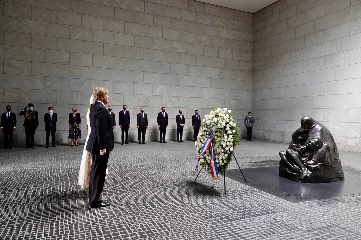 Koning Willem-Alexander en Koningin Máxima legden een krans bij de Neue Wache. De krans werd gelegd bij een kopie van het beeld ‘Moeder met haar dode zoon’ van Käthe Kollwitz. Sinds 1931 is de Neue Wache een monument voor de slachtoffers van oorlog en geweld.