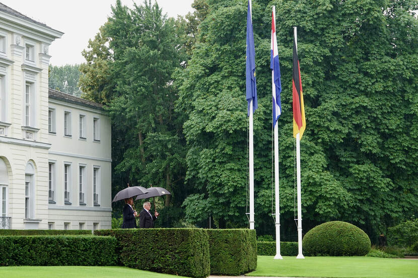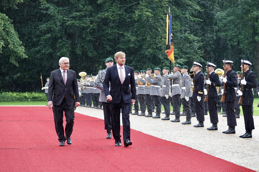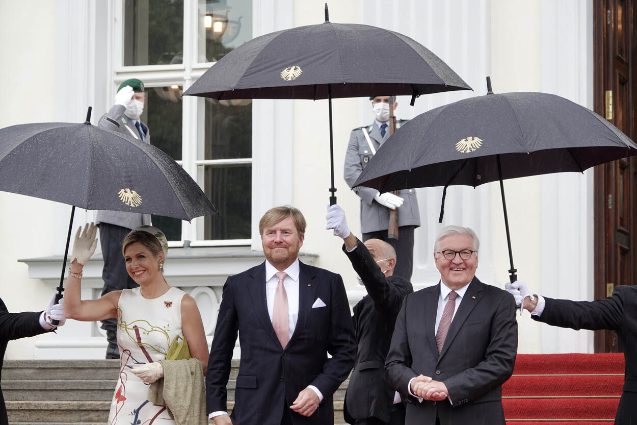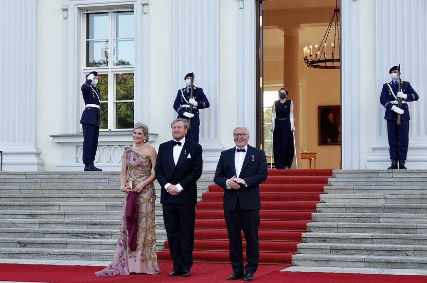 Het staatsbezoek begon in presidentieel paleis Schloss Bellevue, de ambtswoning van de bondspresident van Duitsland. Bondspresident Frank-Walter Steinmeier en zijn echtgenote Elke Büdenbender ontvingen het Koninklijk Paar. Beide volksliederen werden gespeeld waarna Koning Willem-Alexander de erewacht inspecteert.