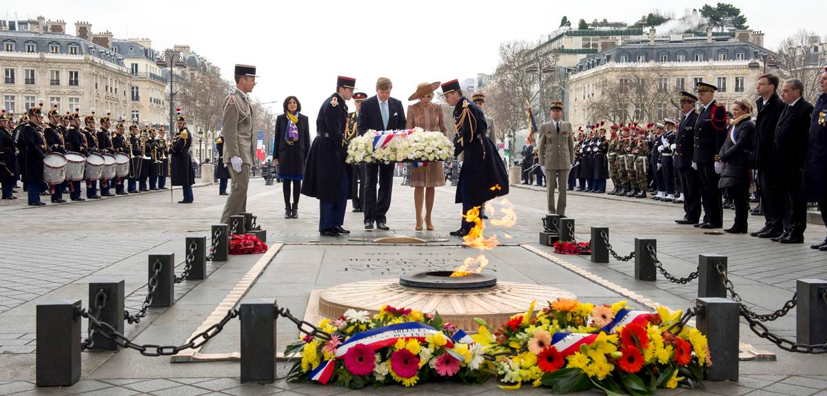 Het staatsbezoek ving aan op donderdagochtend met een welkomstceremonie bij de Arc de Triomphe. De Koning legde vervolgens een bloemstuk bij het Graf van de Onbekende Soldaat, onder de Arc de Triomphe, waarna het Koninklijk Paar het Livre d'Or tekende. Aansluitend ontving president Hollande de Koning en Koningin voor een gesprek in het Palais de l'Élysée.