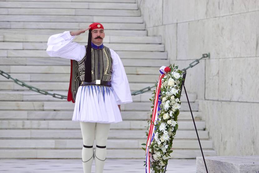 Het Koninklijk Paar legde op maandagochtend bij aanvang van het staatsbezoek een krans bij het monument van de onbekende soldaat op het Syntagmaplein in Athene. Daarna werden zij welkom geheten door president Sakellaropoulou en ontvangen op het Presidentieel Paleis.
