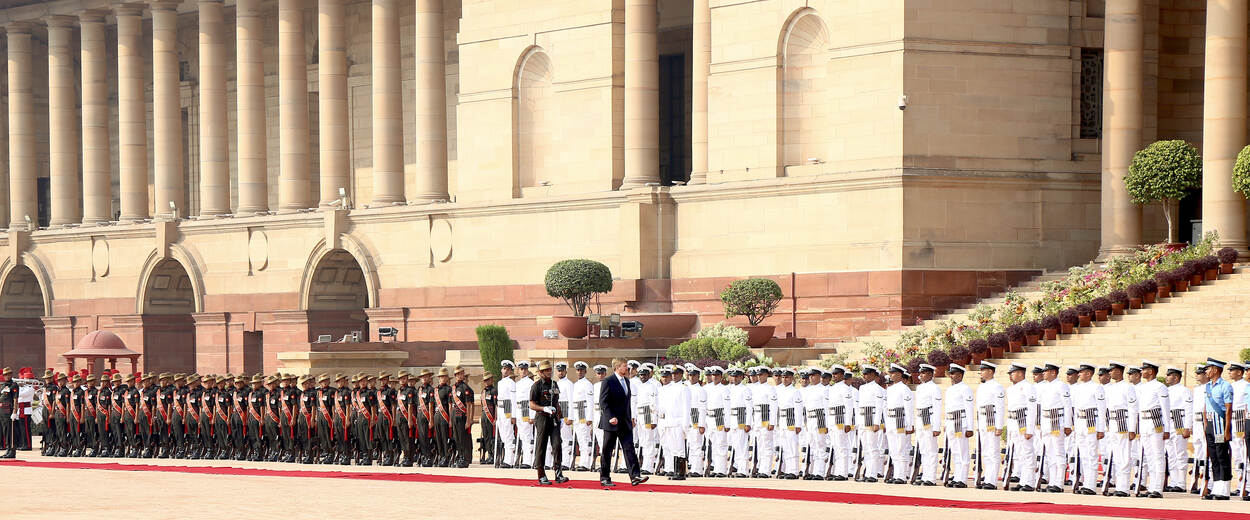 Het staatsbezoek begon in New Delhi. Hier ontvingen president Ram Nath Kovind en zijn echtgenote Savita Kovind het Koninklijk Paar in het presidentieel paleis (Rashtrapati Bhavan).