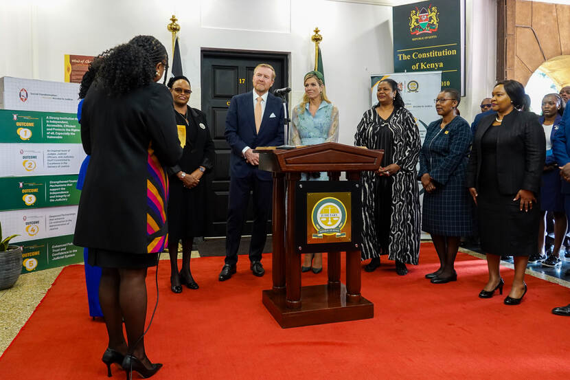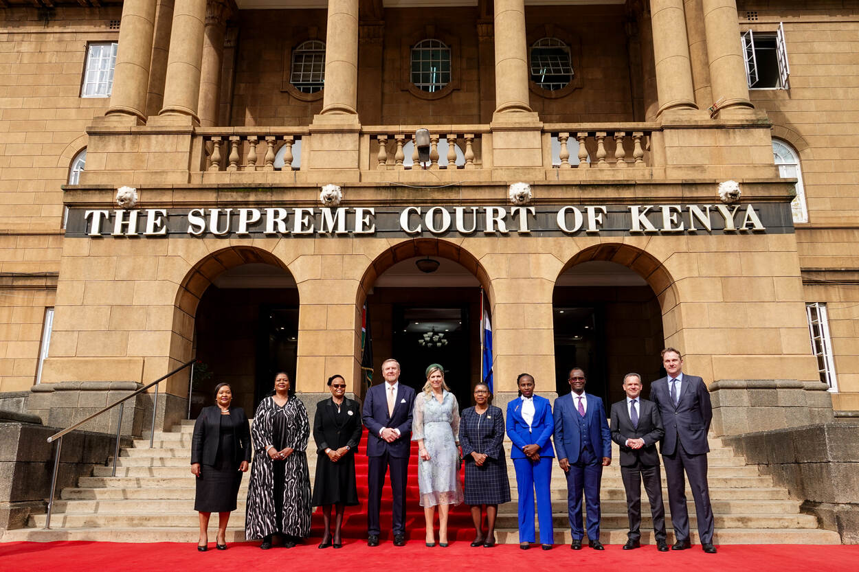Het Supreme Court van Kenia is de hoogste rechtbank in het land en velt het laatste oordeel over juridische geschillen, constitutionele kwesties en andere belangrijke zaken die door lagere rechtbanken worden behandeld. Centraal staat het belang van de onafhankelijkheid van de rechterlijke macht om inclusieve toegang tot het recht te verbeteren en de Nederlands-Keniaanse initiatieven daartoe. Na een rondleiding door het Judiciary Museum over de geschiedenis en ontwikkeling van het rechtssysteem in Kenia, spraken de Koning en Koningin Máxima onder meer met vrouwelijke leiders in de justitiesector.
