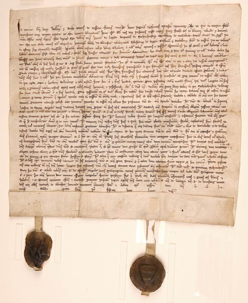 De Delingsakte uit 1255 is één van de voorwerpen uit de tentoonstelling over de geschiedenis van Luxemburg en Nederland.