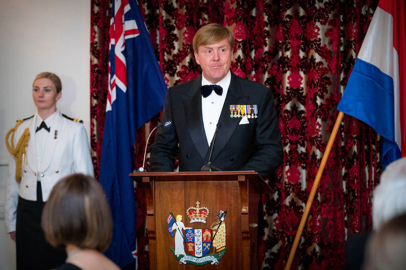 In de avond houdt Koning Willem-Alexander een toespraak tijdens het staatsbanket in het Government House.