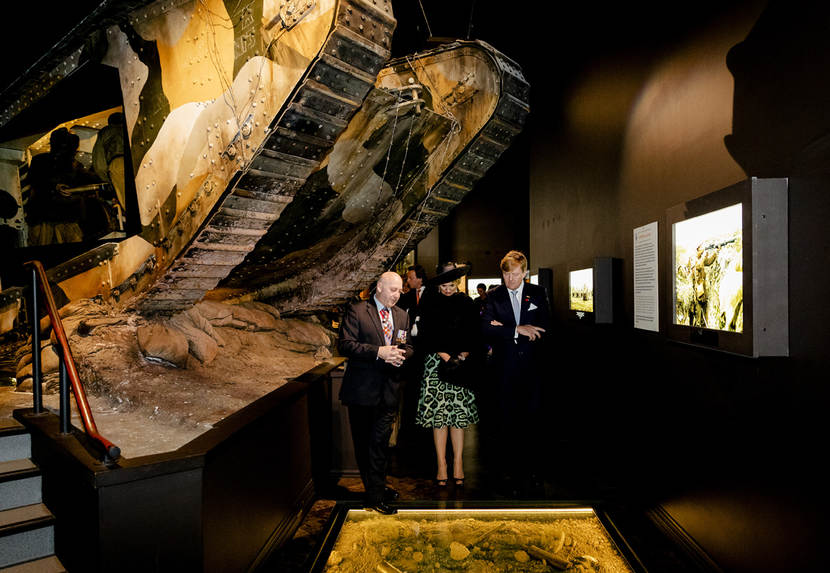 De Koning en Koningin krijgen een rondleiding over de Great War Exhibition. De tentoonstelling vertelt het verhaal van de WO I. De tentoonstelling is een initiatief van Sir Peter Jackson die ook de gehele totstandkoming van de expositie heeft gerealiseerd.