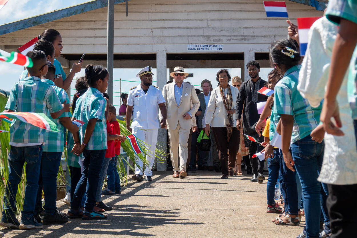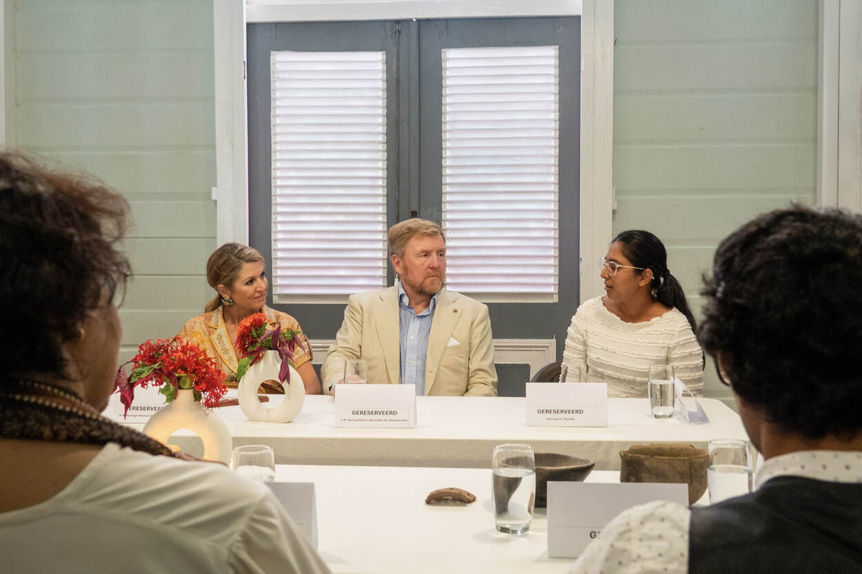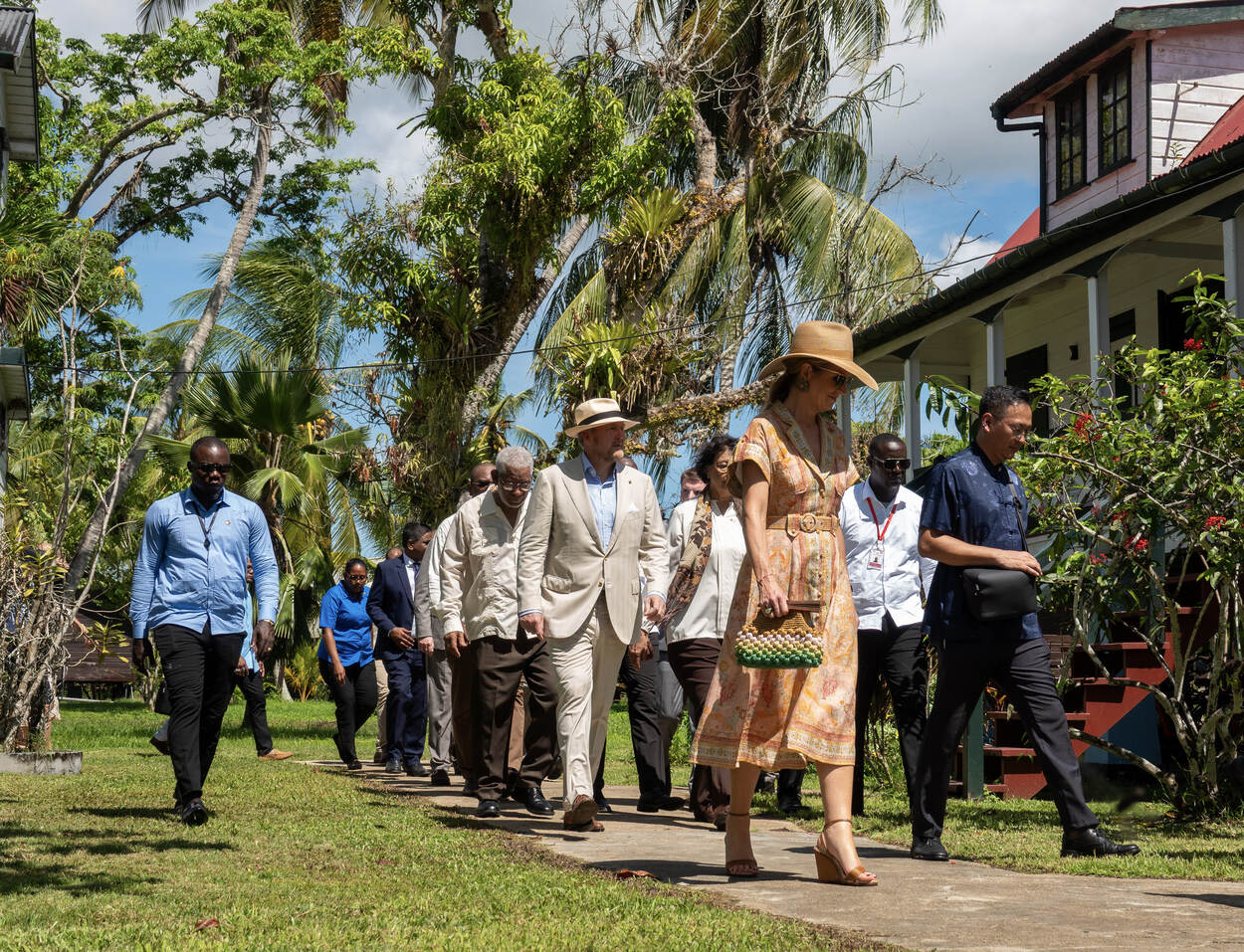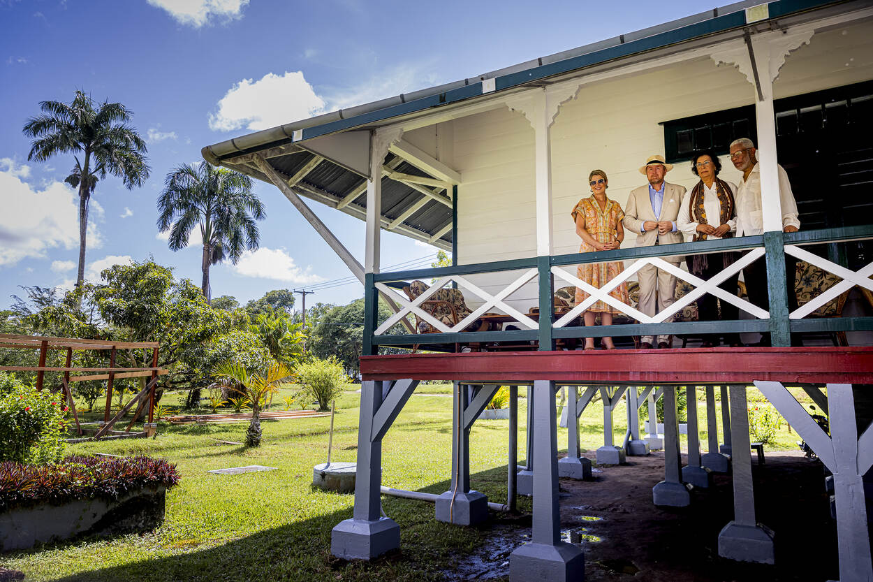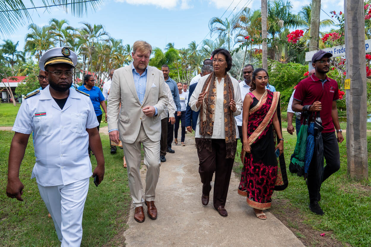 Het Koninklijk Paar bezocht hier onder andere het diorama ‘Het leven op de Plantage’, gemaakt door de Arubaans-Surinaamse Rita Maasdamme, een kunstwerk dat bezoekers meeneemt naar het koloniale Suriname. Het Koninklijk Paar ging op Frederiksdorp ook in gesprek met jonge erfgoedprofessionals, waaronder archeologen en medewerkers van het Nationaal Archief Suriname. In het gesprek gaven de jonge erfgoedprofessionals hun kijk op de uitdagingen en kansen binnen de Surinaamse erfgoedsector en deelden zij hun ervaring en mening over erfgoedsamenwerking tussen Suriname en Nederland.