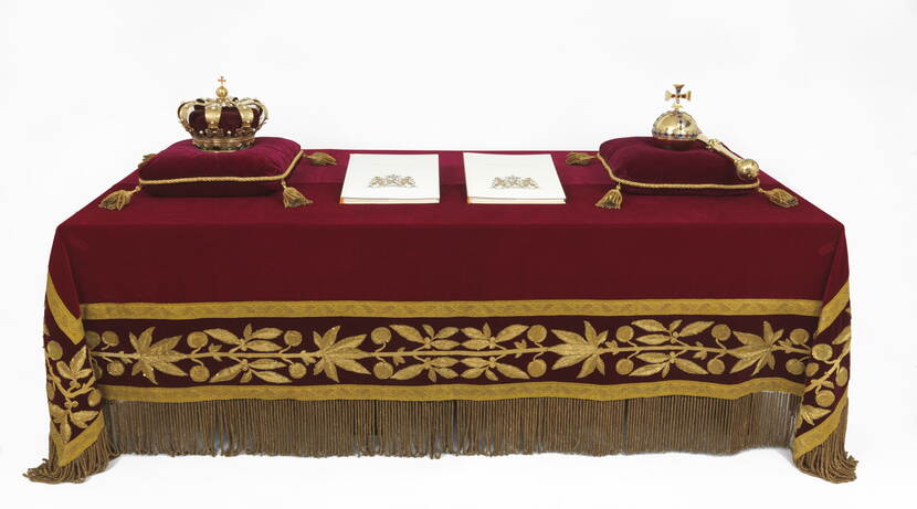 De regalia zijn in 1840 in opdracht van Koning Willem II door verschillende edelsmeden gemaakt. Ze symboliseren de macht en waardigheid van de Koning. De regalia bestaan uit de kroon, de scepter, de rijksappel, het rijkszwaard en de rijksstandaard.